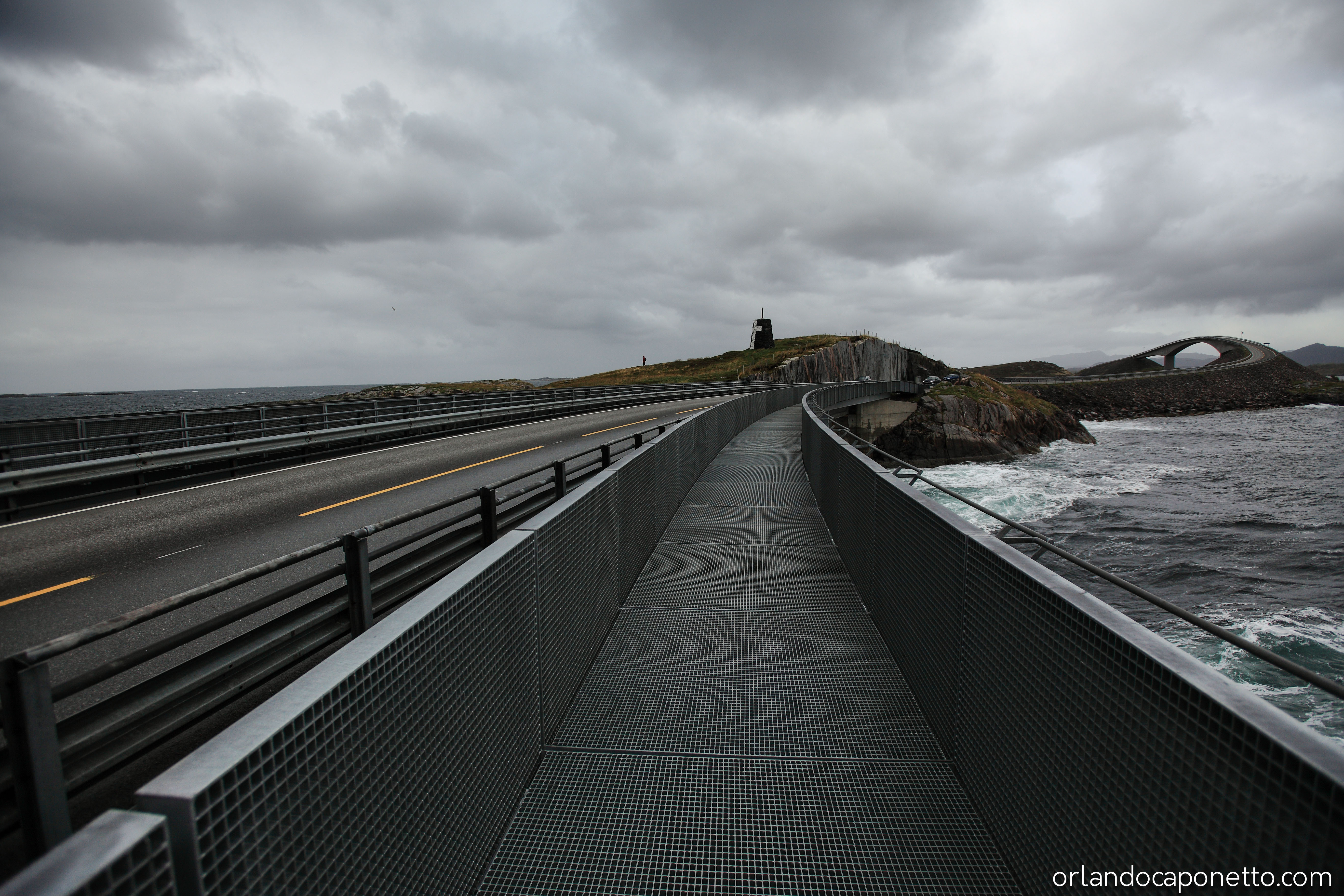 Con le sue sorprendenti architetture di ingegneria ed altissimi ponti, la strada consente di attraversare in solo mezz’ora di macchina, un tratto di mare lungo oltre 8 km che separa le due città. Un luogo che sembra uscito da un film apocalittico, dove le condizioni meteo sono spesso avverse, e a causa del forte vento del nord e delle onde del Mare del Nord che sbattono con grande forza alla base dei piloni che sorreggono i ponti arrivano fino a colpire le macchine rendendo impossibile percorrerla. In certe stagioni dell’anno ci avevano detto che dal suo percorso pedonale con un po’ di fortuna si ha perfino la possibilità di osservare alcune specie di foca e balena.