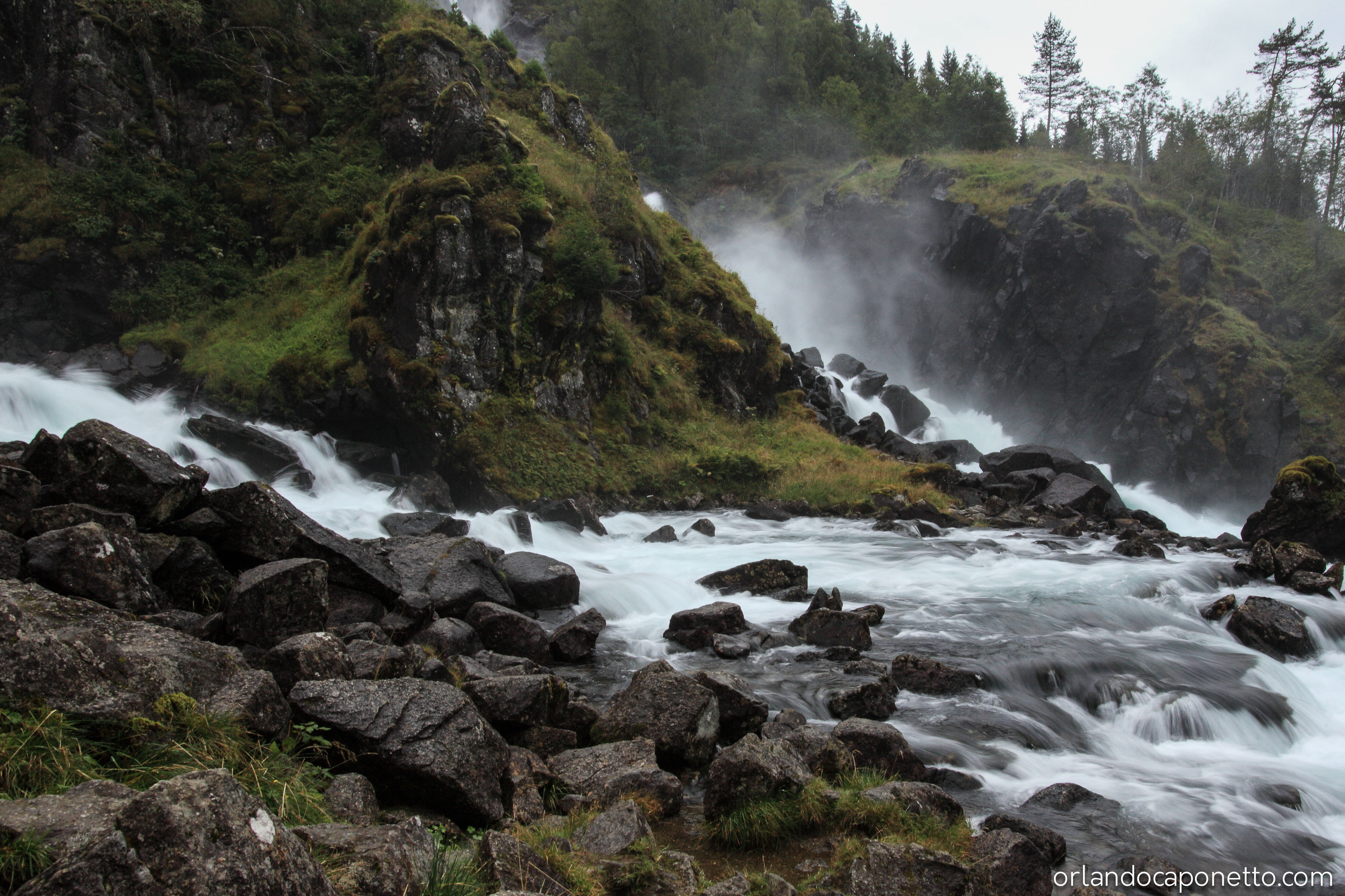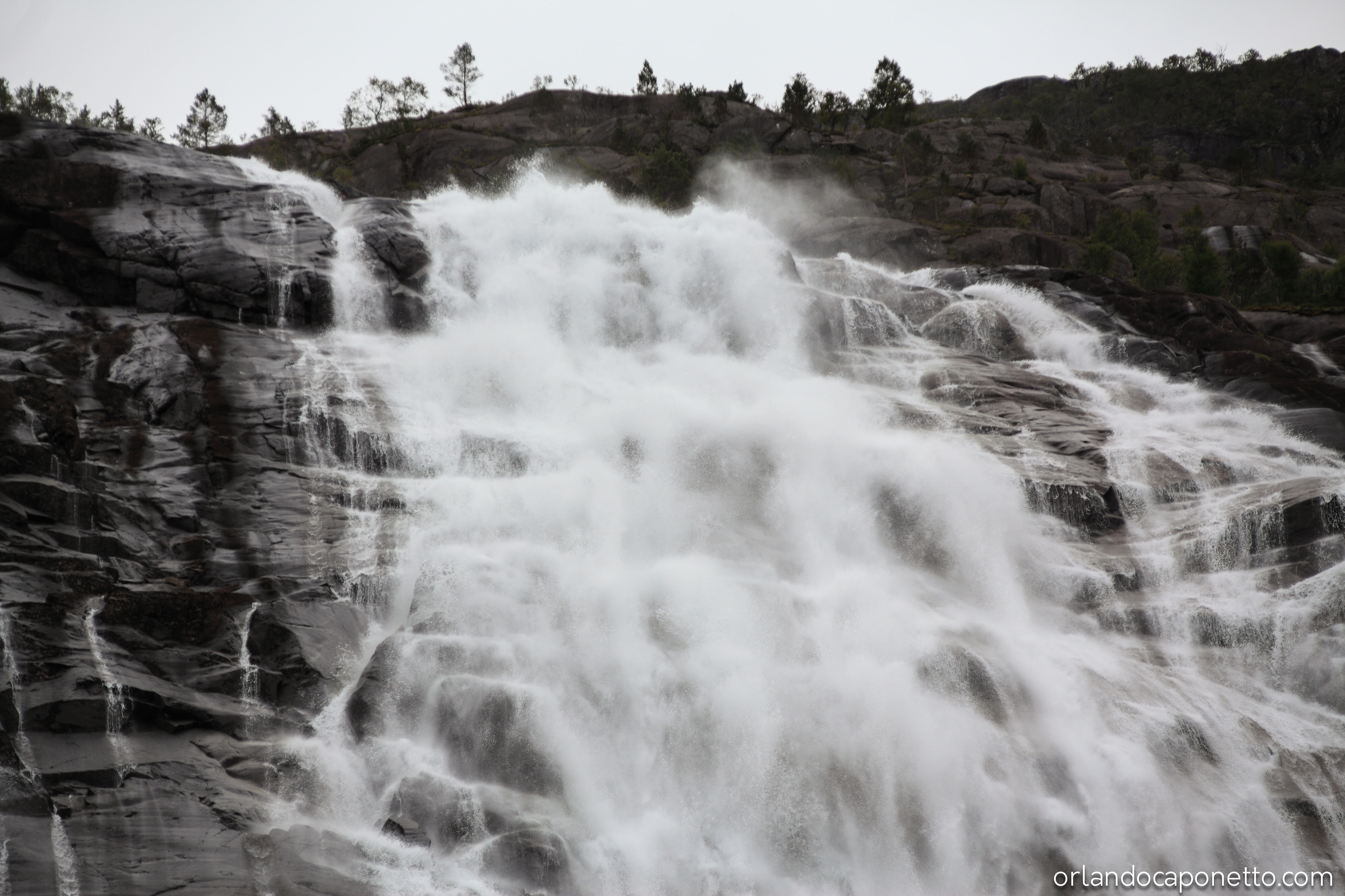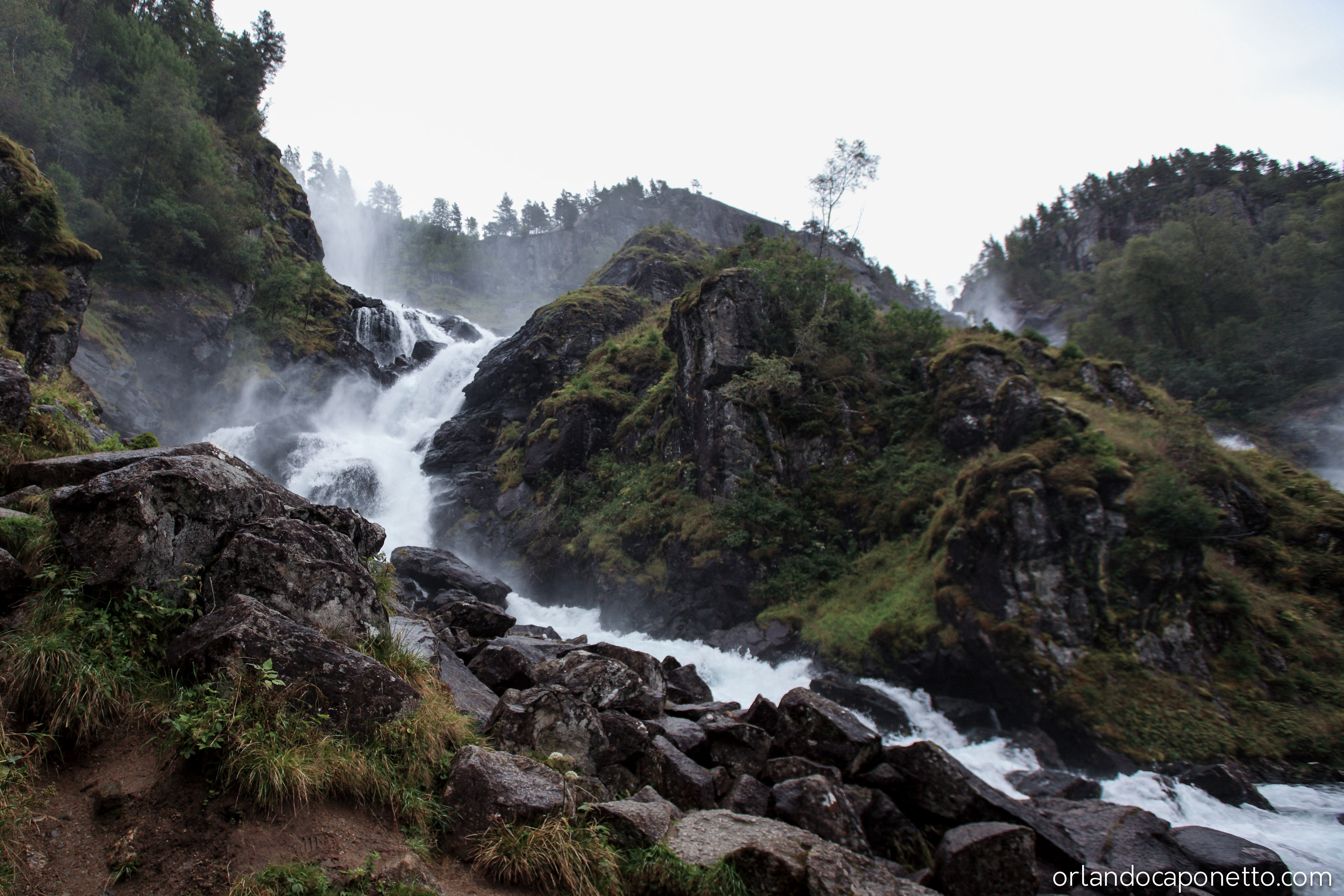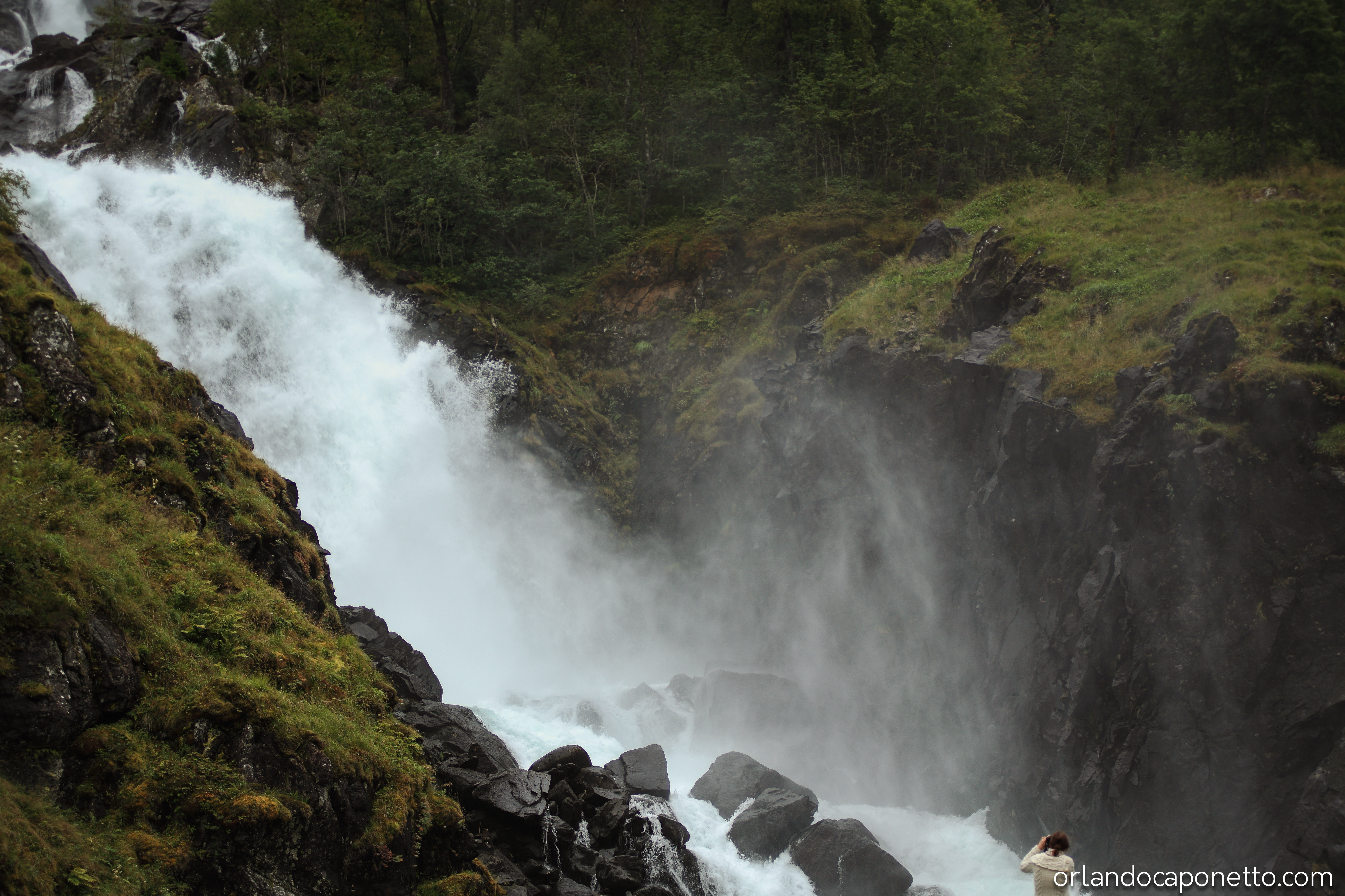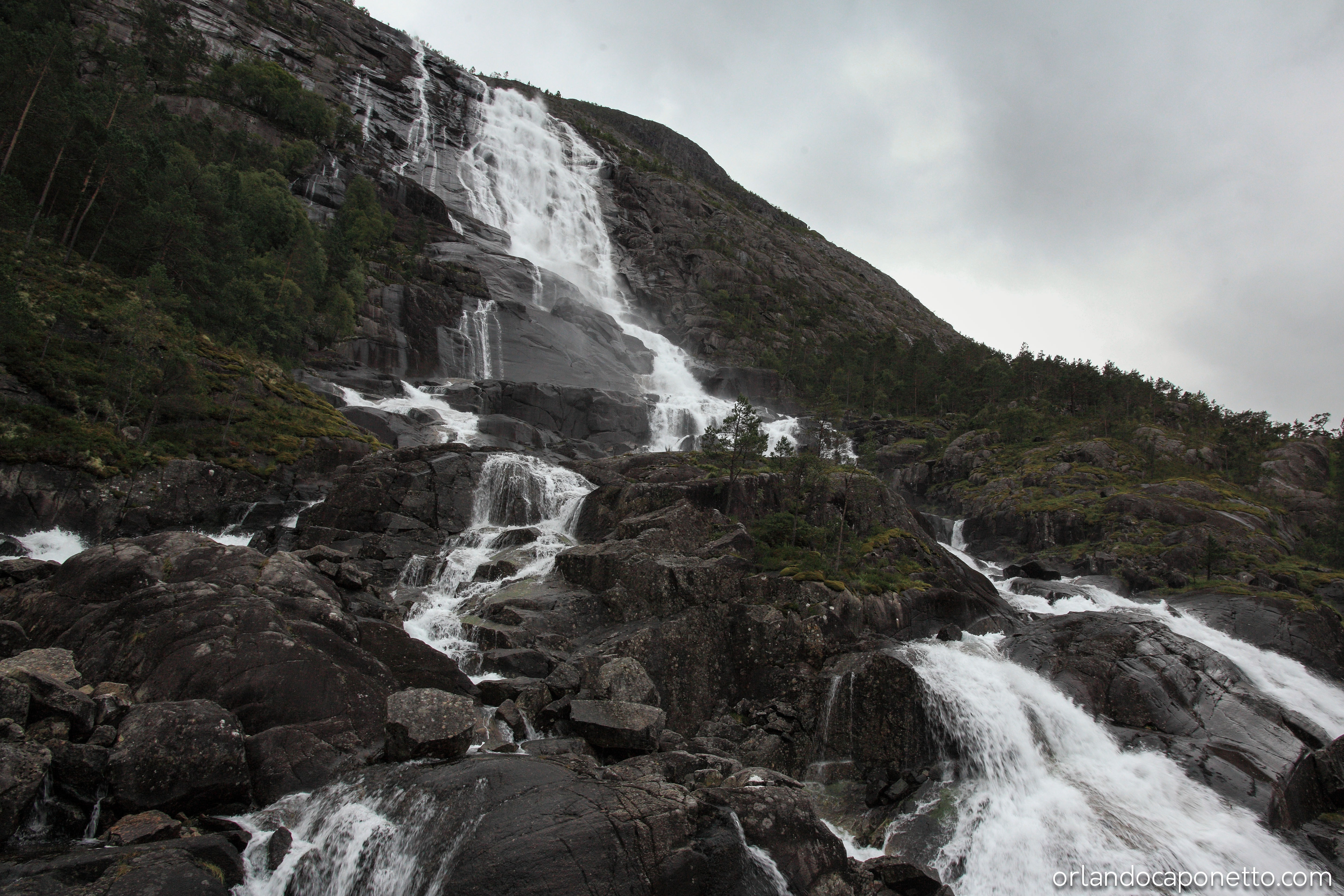 Percorrendo la strada E134 verso la città di Bergen nella regione del Vestland, dopo aver costeggiato le rive dell’Åkrafjorden ammirando la bellezza di uno dei migliaia di fiordi dove le acque del mare si insinuano fin dentro le terre della Norvegia, abbiamo visto le famose cascate di Langfossen le cui acque precipitano quasi a picco dalla montagna dall’altezza di 612m bagnando le rocce scure fino a riversarsi nelle calme acque del fiordo che le accoglie pacificamente in tutto il loro fragore. Non posso che dire quanto sia grande l’emozione di osservare un simile elemento naturale e poter ammirare quel manifestarsi con i nostri occhi.