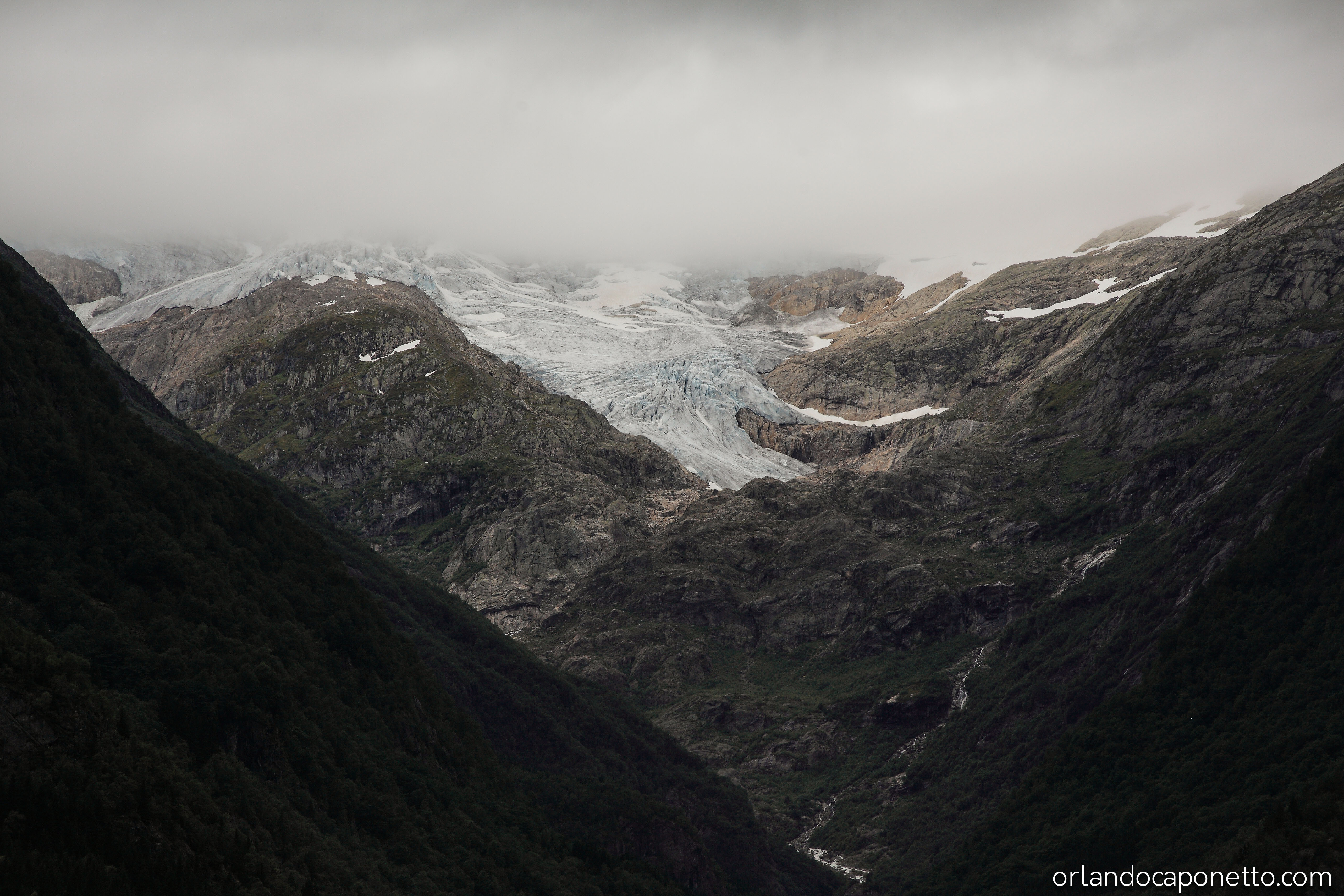 Proseguendo verso nord e dirigendosi nelle zone più impervie siamo infine arrivati di fronte all’immenso spettacolo del ghiacciaio più antico della Norvegia.