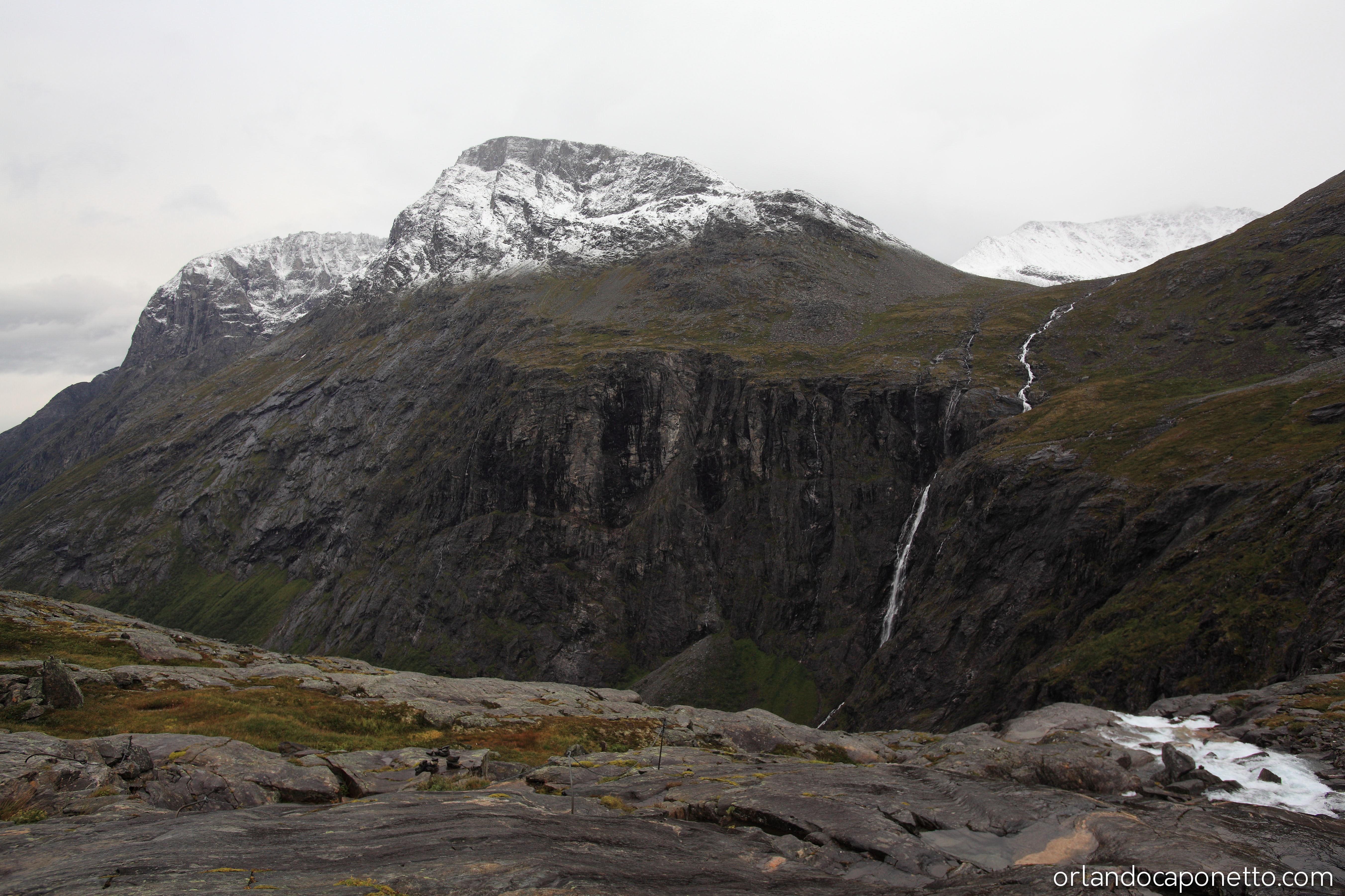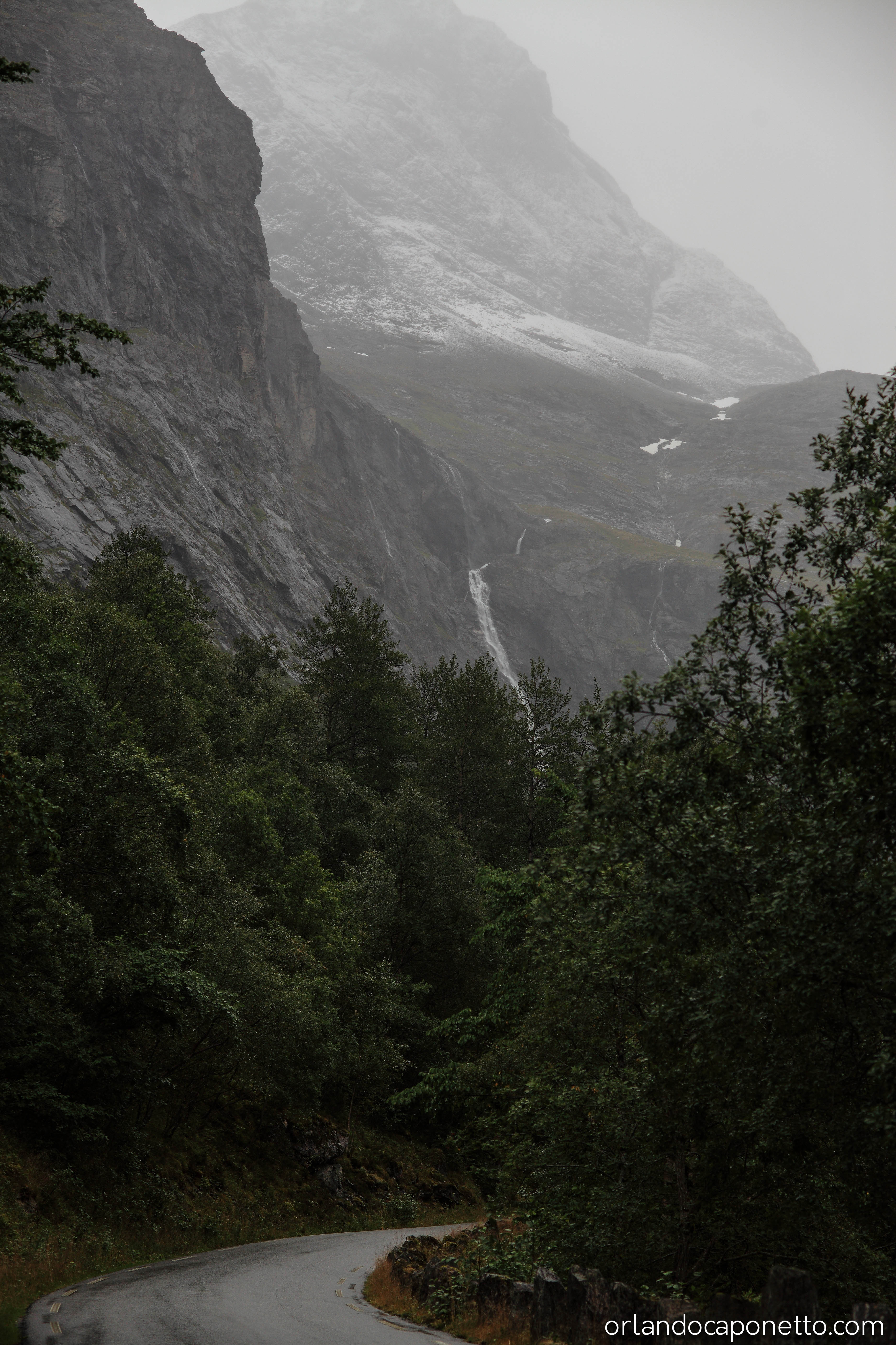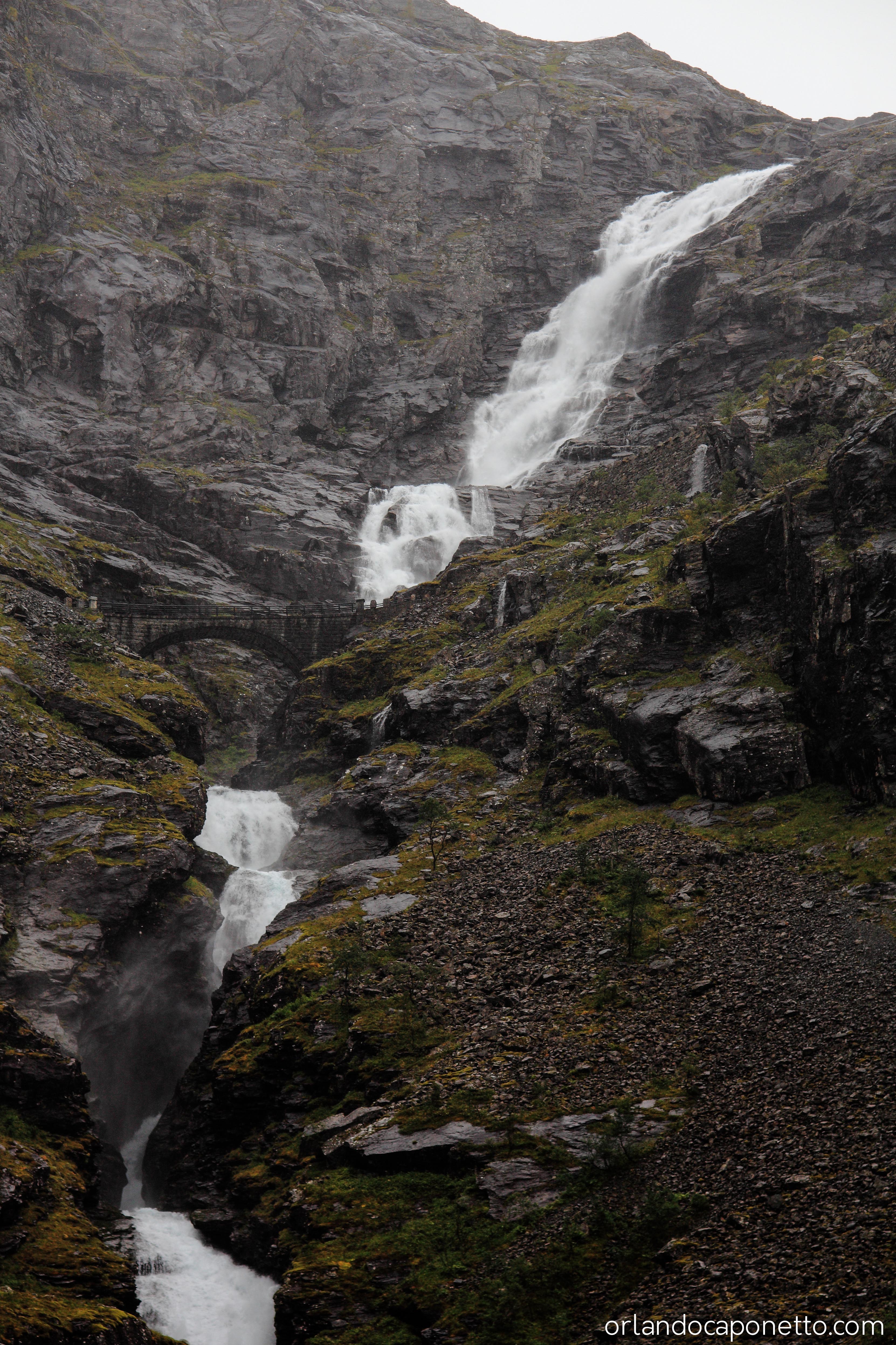 Viaggiando verso la parte interna della Norvegia abbiamo in seguito raggiunto la strada del Trollstigen che conduce, attraverso una serie infinita di tornati ormai celebri, alla Valle dei Troll, una valle circondata da una moltitudine di cascate naturali, meravigliose acque in caduta libera che attraversando le rocce millenarie plasmate dai ghiacciai, tra muschi e licheni, sembravano incantate, direttamente uscite dalle fiabe di J.R.Tolkien.