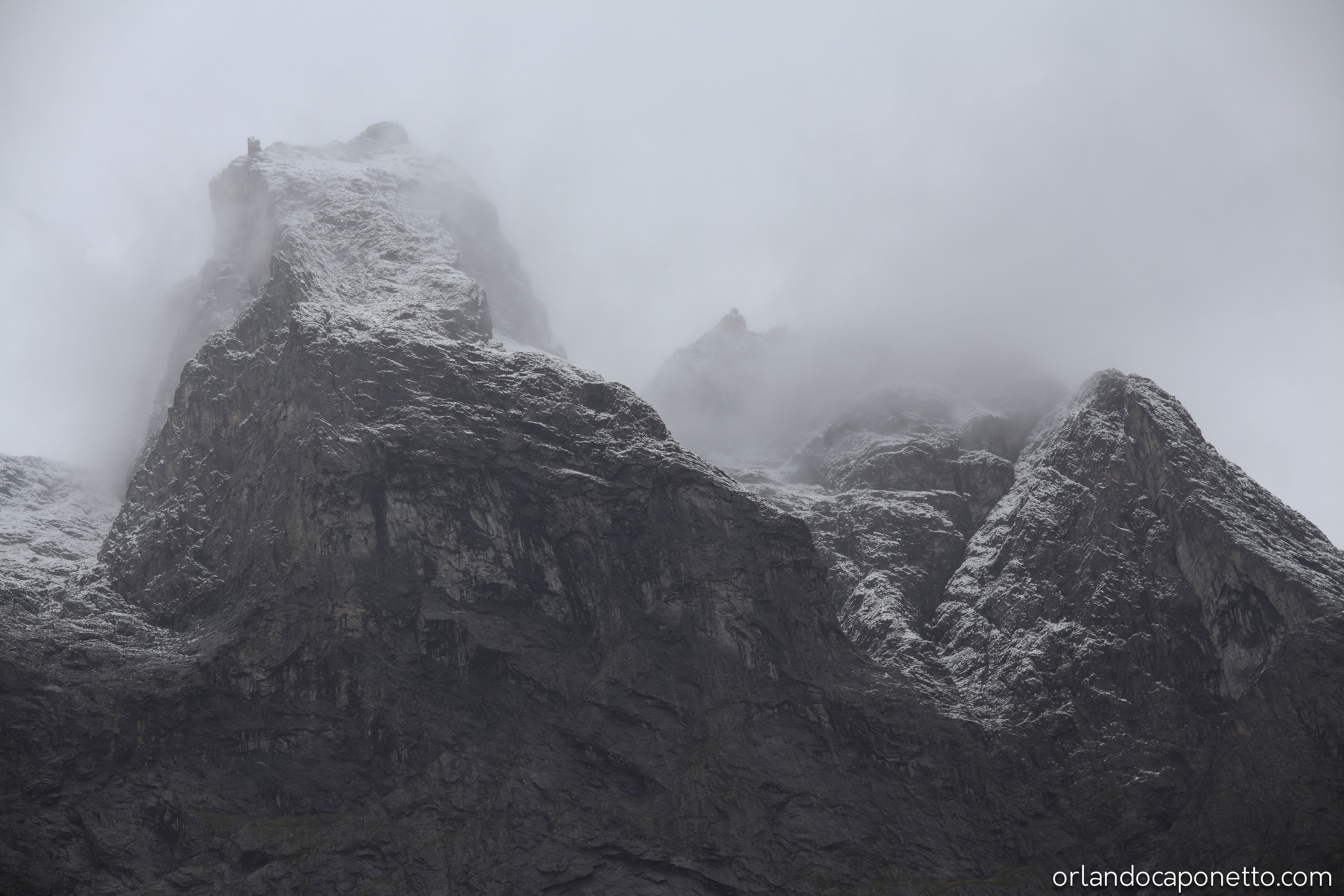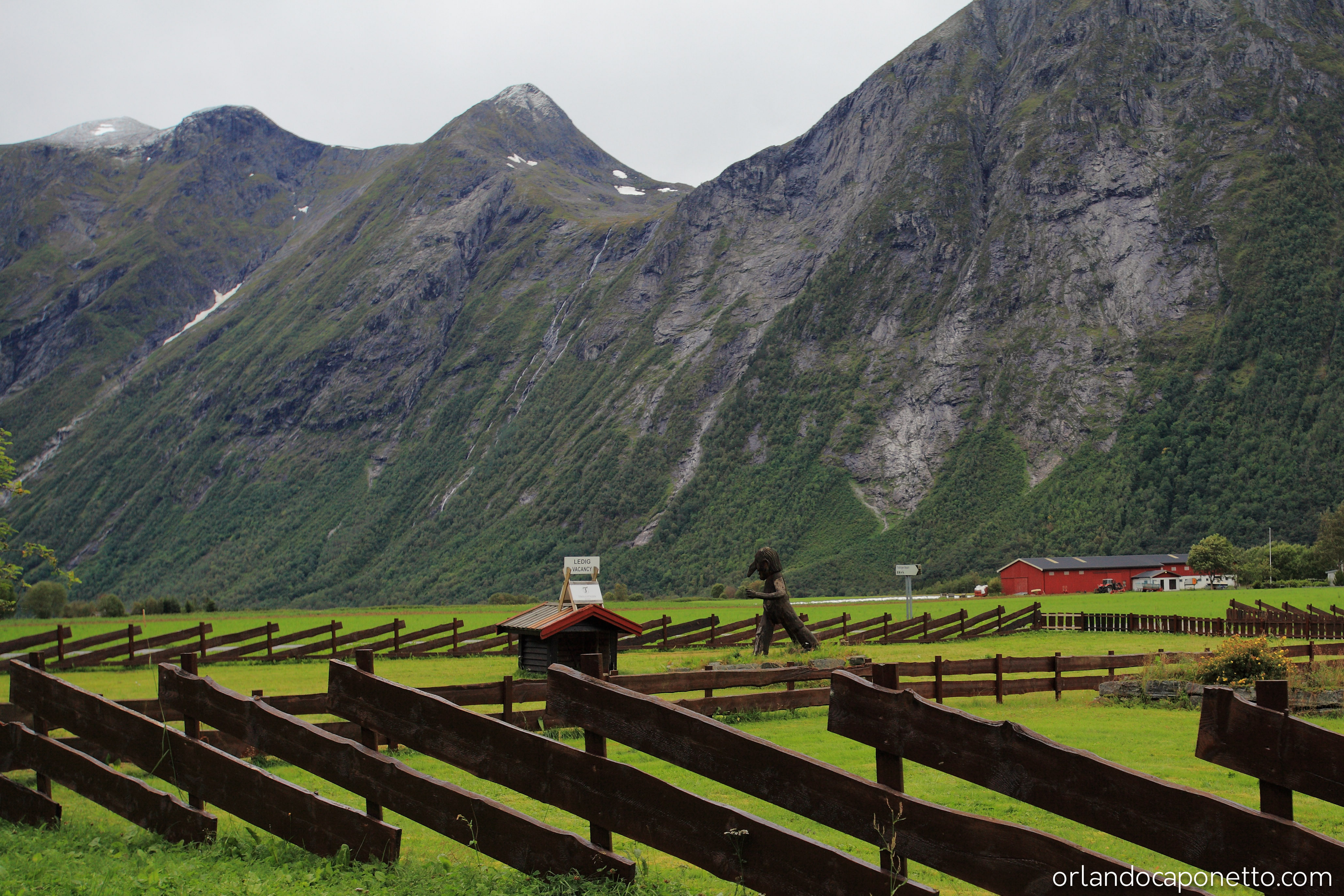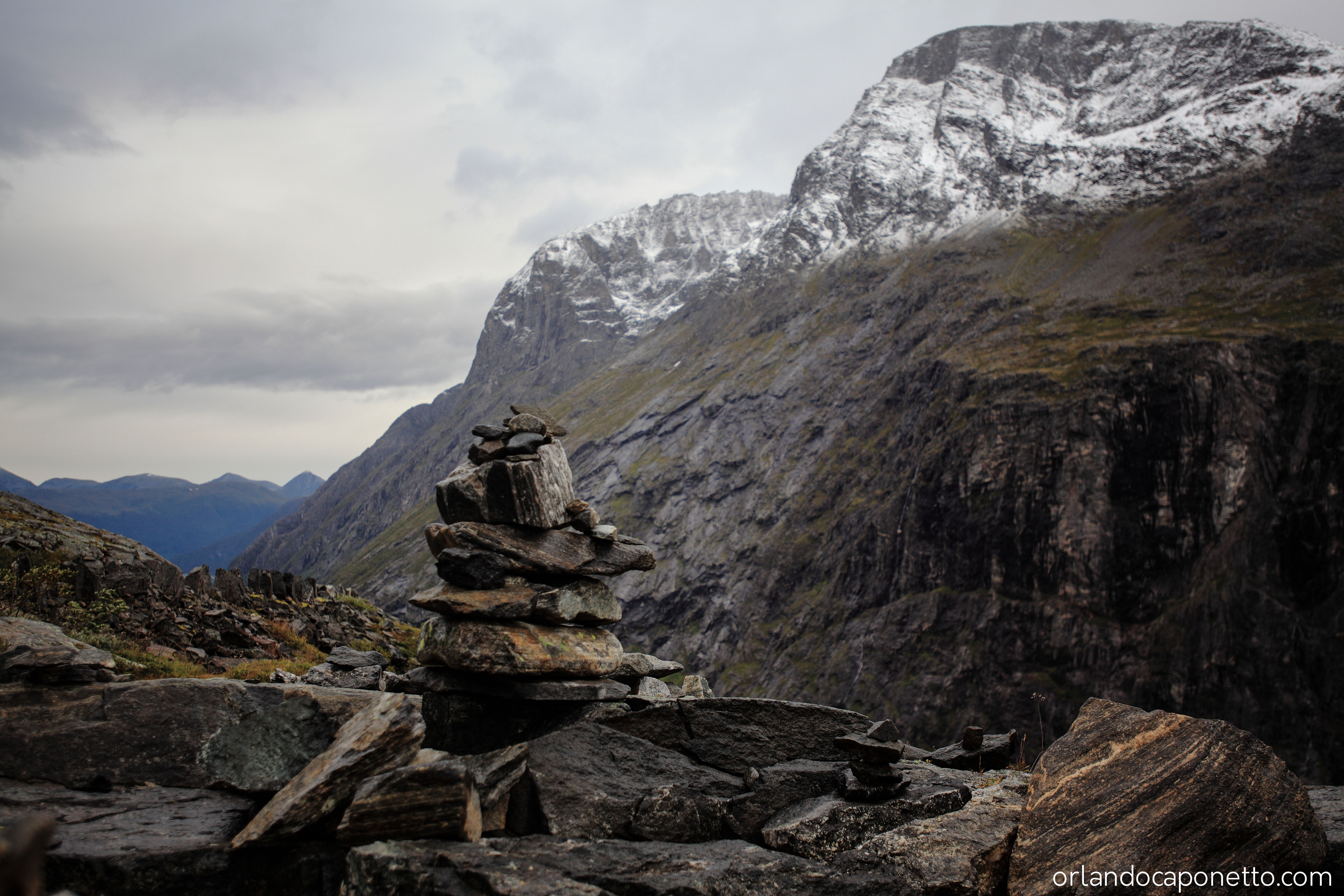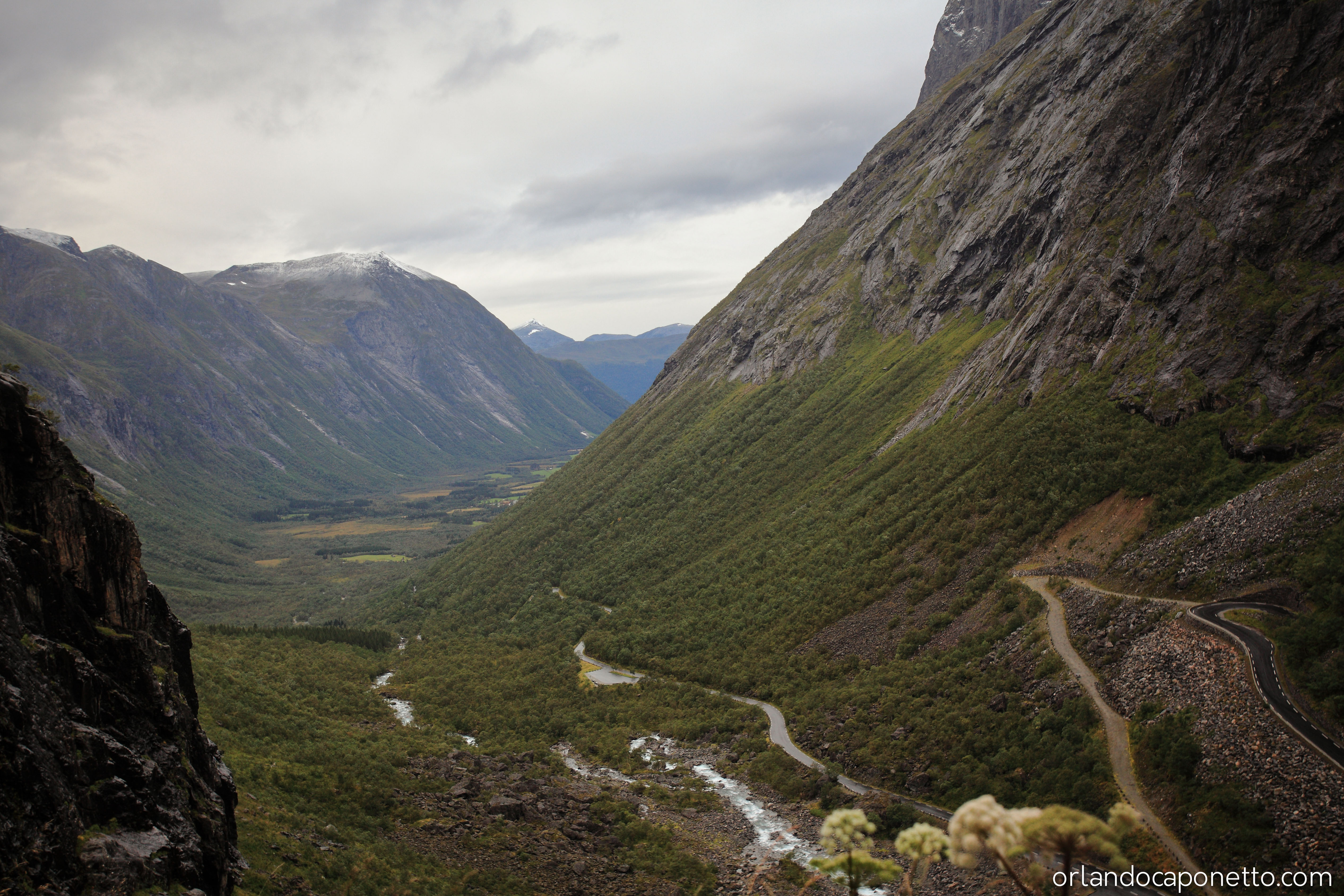 Viaggiando verso la parte interna della Norvegia abbiamo in seguito raggiunto la strada del Trollstigen che conduce, attraverso una serie infinita di tornati ormai celebri, alla Valle dei Troll, una valle circondata da una moltitudine di cascate naturali, meravigliose acque in caduta libera che attraversando le rocce millenarie plasmate dai ghiacciai, tra muschi e licheni, sembravano incantate, direttamente uscite dalle fiabe di J.R.Tolkien.